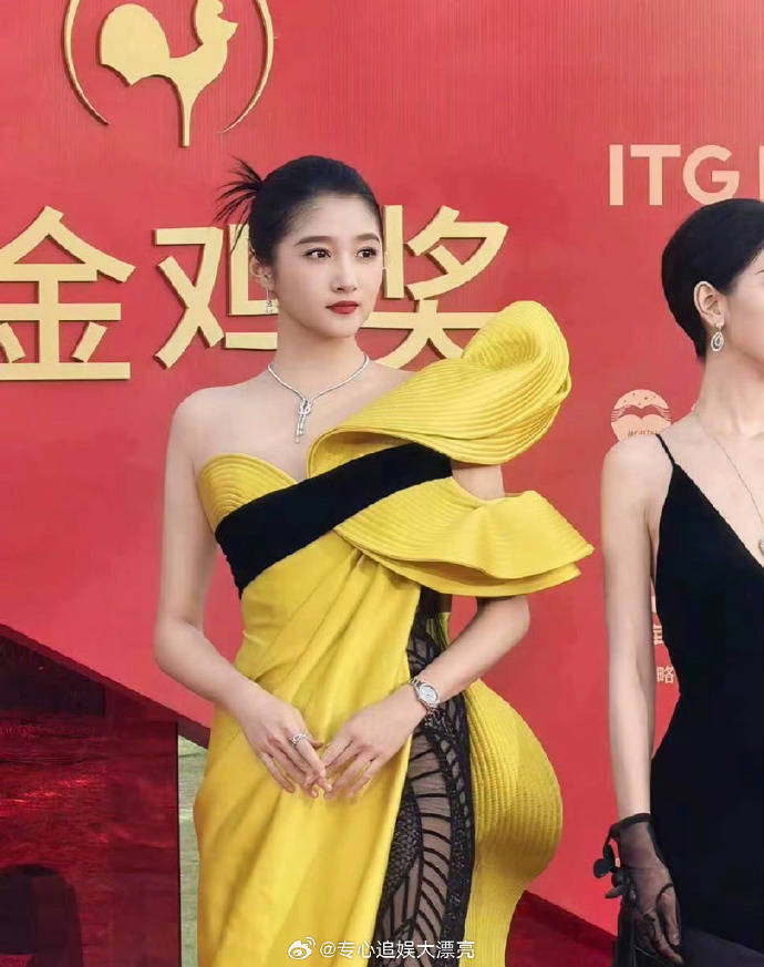 关晓彤的情况正好相反。这位“国民闺女”早年总被嘲“大壮”“土味”,最近却靠金鸡奖的黄黑撞色礼服打了翻身仗。生图里她笑起来露出小虎牙,裙摆被风吹起的瞬间灵动又自然,完全摆脱了过去穿蓬蓬裙的拘谨感。但争议点在于她的“腿精”人设——工作室精修图里双腿又细又直,可现场生图却暴露了膝盖处的肌肉线条,有网友扒出她为了维持身材常年穿束腿裤,甚至在剧组吃饭只敢用儿童餐具。这种“用力过猛”的精致,反而让部分观众觉得失去了25岁女孩该有的松弛感。